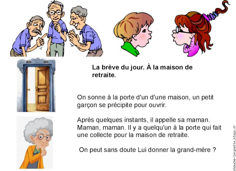 Après quelques instants, il appelle sa maman. Maman, maman. Il y a quelqu'un à la porte qui fait une collecte pour la maison de retraite.
