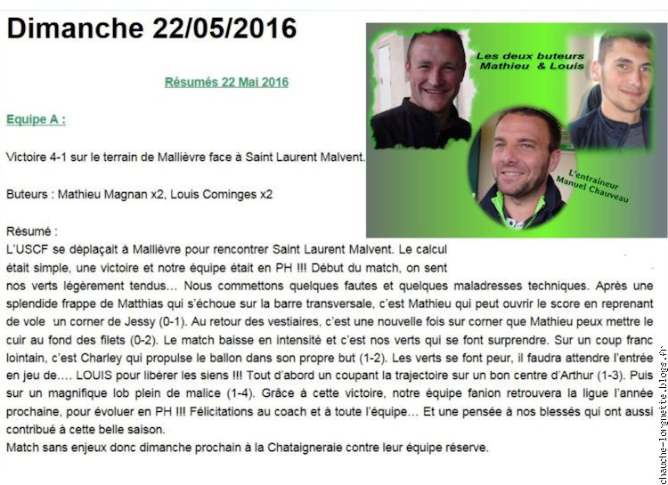 Mémento sportif. Samedi : 15 h U17 se déplacent à Saint-Hilaire-de-Loulay. Dimanche : 10 h U15 reçoivent Saint-Fulgent à La Copechagnière ; 13 h Chauché 3 reçoivent Saint-Georges-de-Montaigu ; 15 h Chauché 2 se déplacent à Saligny, Chauché 1 reçoit Saint-Fulgent.